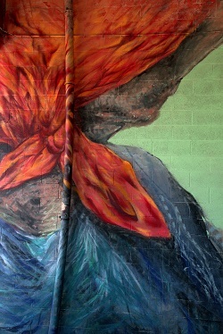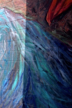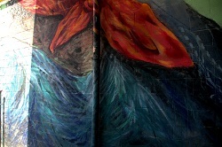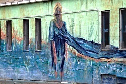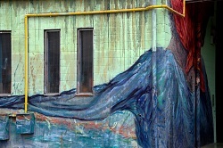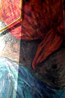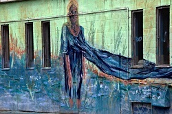 Una donna anziana porta un fazzoletto tipico delle mondine... la stoffa del vestito si estende...Lei appare come un fantasma dall’acqua stagnante in cui resta, inerme....(Leggi tutto)